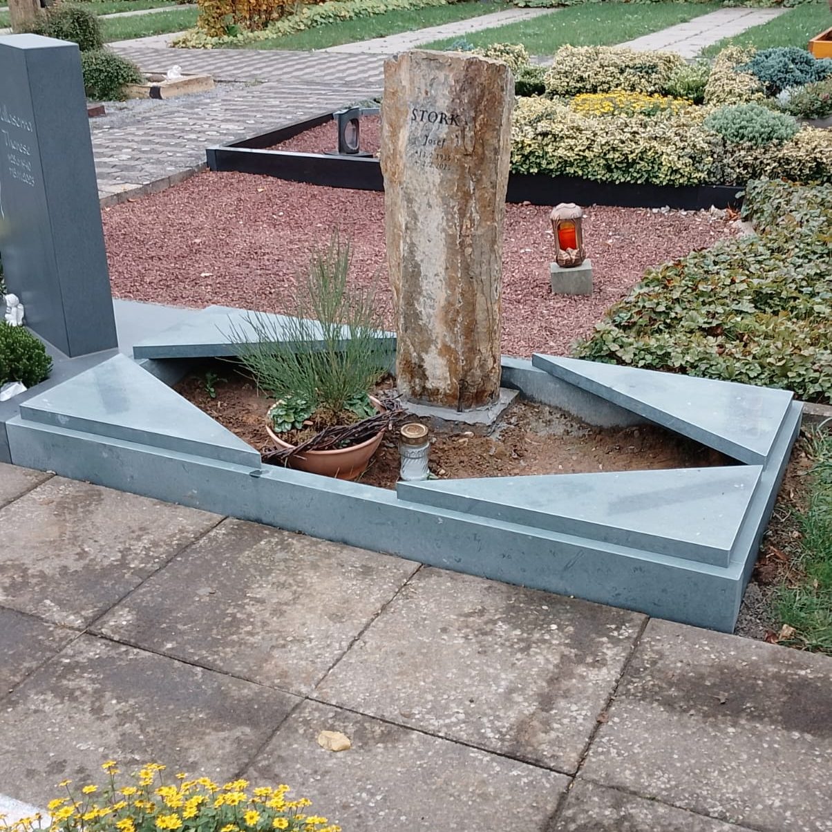Anheben und Reinigung von Grabanlagen, Kiesbeete, Schriftgestaltung im Sandstrahlverfahren.